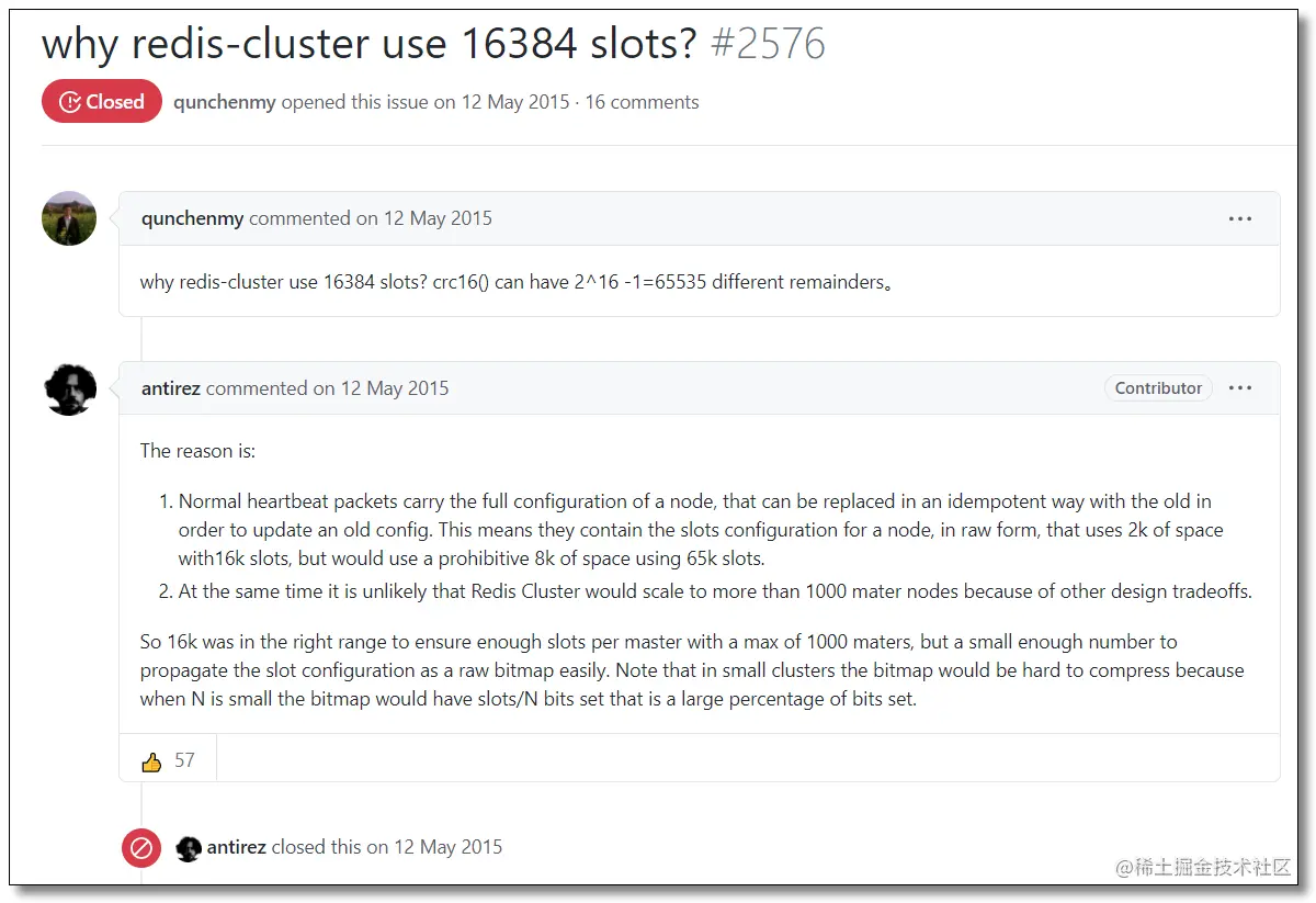 综上所述,作者决定取 16384 个槽,不多不少,刚刚好!