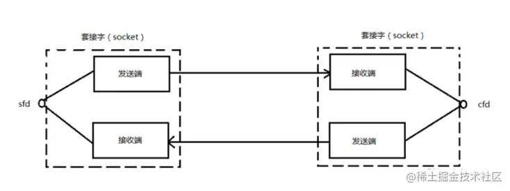 使用socket会建立一个socket pair,如下图, 一个文件描述符操作两个缓冲区。