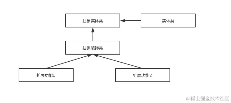 - 装饰(Decorator)角色:持有一个构件(Component)对象的实例,并定义一个与抽象构件接口一致的接口。