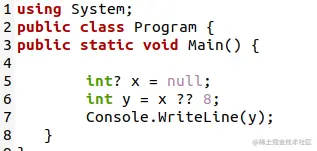 在这个例子中,我们将通过把字符串变量作为双问号的操作数来确定它的值。在确定的字符串变量的帮助下,Console.WriteLine()函数将根据其非空值决定打印字符串变量。在这个方法中,我们将用一个字符串来代替一个整数,以预见空值凝聚运算符的变化。