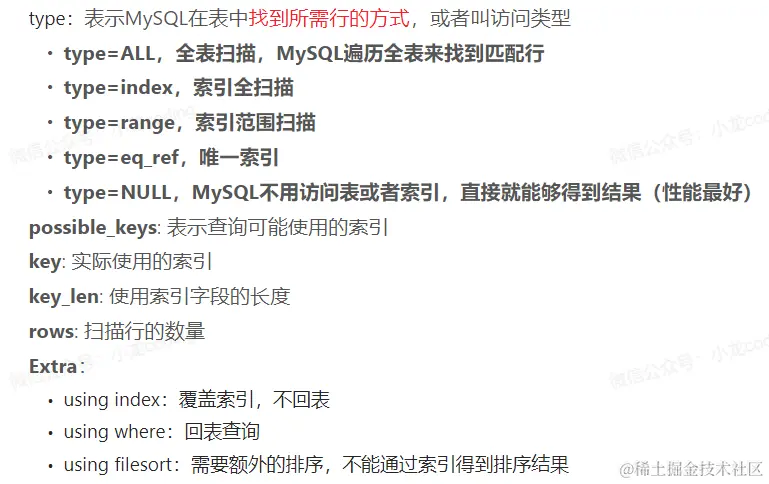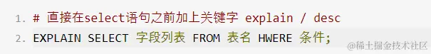 EXPLAIN 或者 DESC 命令获取 MySQL 如何执行 SELECT 语句的信息,包括在 SELECT 语句执行过程中表如何连接和连接的顺序。