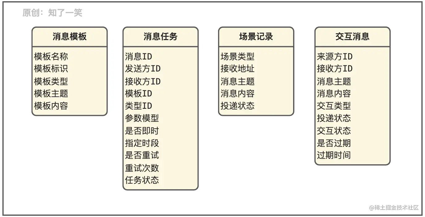 - 场景记录:消息最终推送出去的内容和场景分类,也可以简单的理解为不同渠道的投递记录;