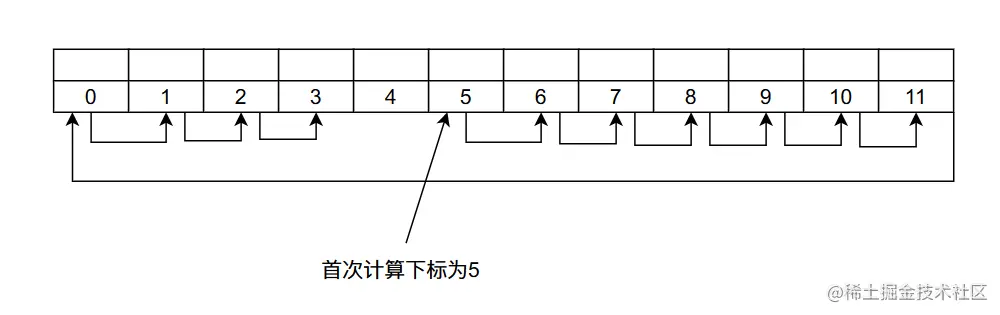 比如在上图当中我们首次计算的哈希值的结果等于5,如果有哈希冲突,那么下次计算出来的哈希值为,如果还是冲突那么计算出来的哈希值为 ......,直到找到一个空位置。谈到这里你可能会问,万一都满了呢?我们在下一小节再谈这个问题。