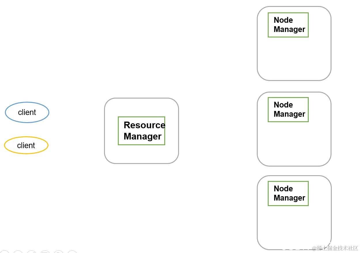 主机称为Resource Manager,从机叫做Node Manager,一主n从。