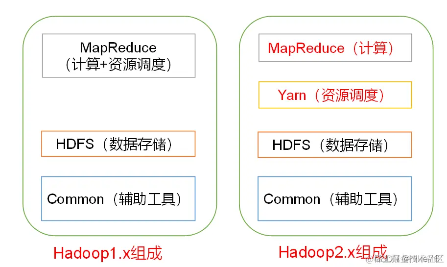 在Hadoop2.x Yarn专门负责资源调度,这种思想称为解耦,解耦的好处是可以将MapReduce计算框架进行替换,比如spark框架。但是2.x比1.x的效率要略低一些。