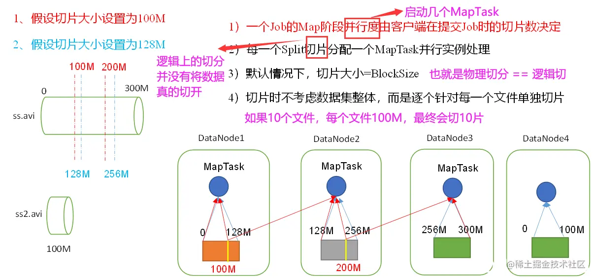 CombineTextInputFormat切片机制: 用于小文件过多的场景,它可以将多个小文件从逻辑上规划到一个切片中,这样多个小文件就可以交给一个MapTask处理。