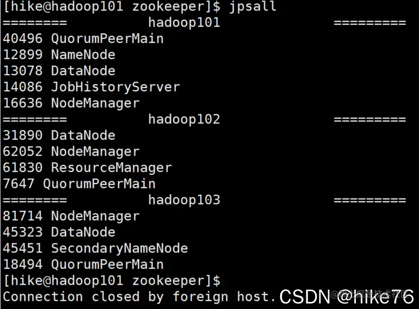 分别在三台机器启动Zookeeper:zkServer.sh start