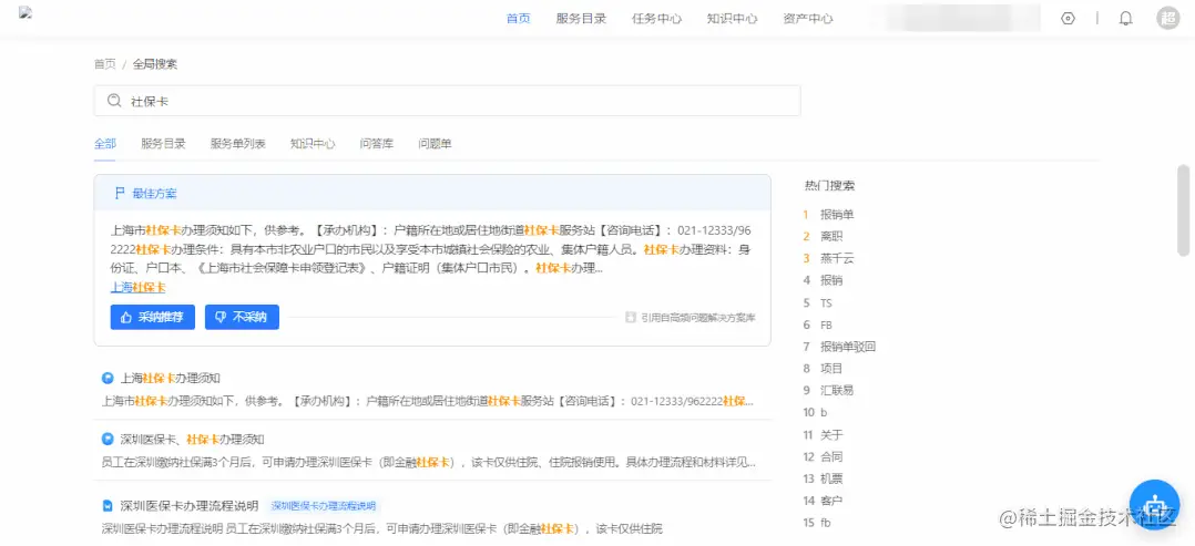 全局搜索(Global Search),顾名思义是指用户可以不受页面和功能模块的限制,一次性搜索信息系统内所有相关的内容,在ITSM场景下是一种常见的用户通过向机器寻求帮助,尝试解决自己需求的方式。
