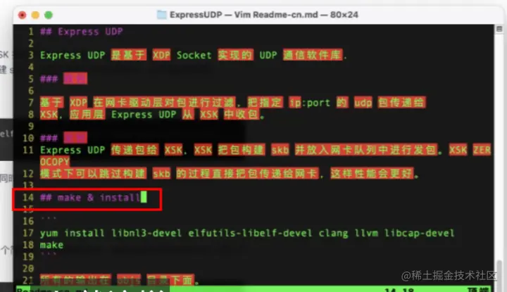 上面步骤中,下载完成后执行命令 cd ExpressUDP 进入该目录,这个时候就已经拿到了代码。Readme-cn.md 文件在这个目录下。