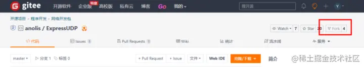 1、需要先 Fork 一下感兴趣的代码仓库;