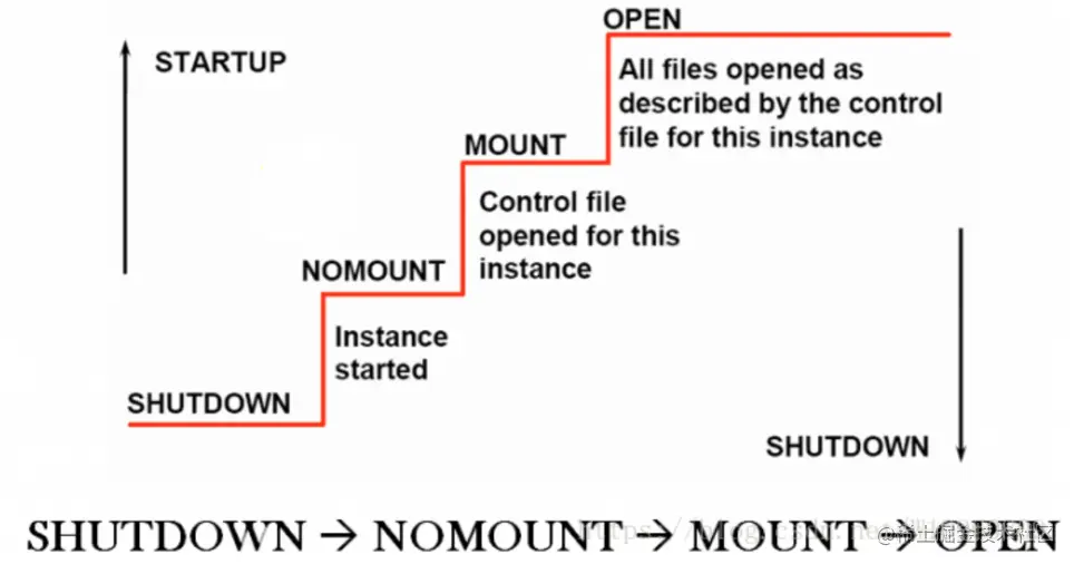 Oracle启动分3个过程nomount、mount和open,这三个过程具体执行的工作如下:
