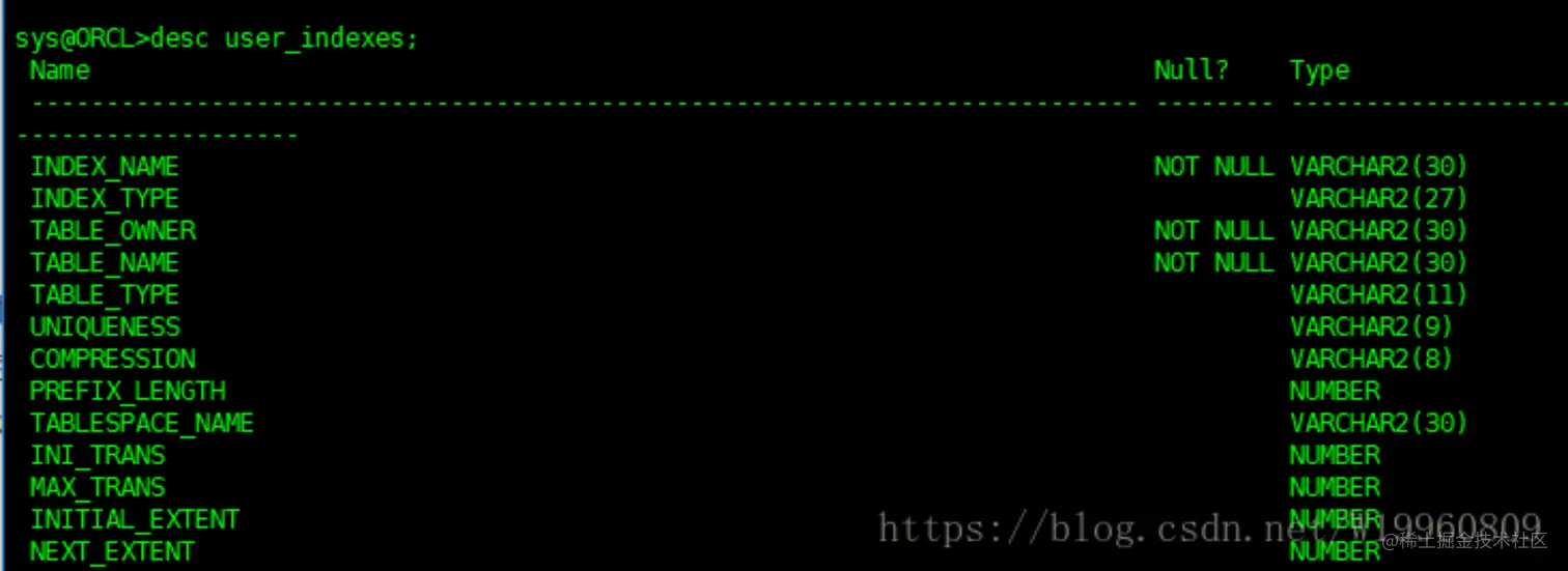 | dba_ind_columns | 所有表及簇上压缩索引的列 |