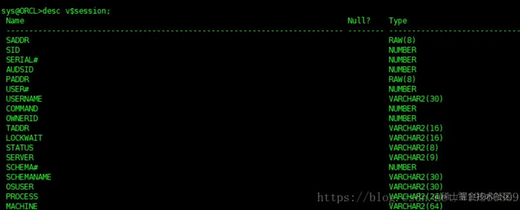 | v$session | 有个会话的信息 |