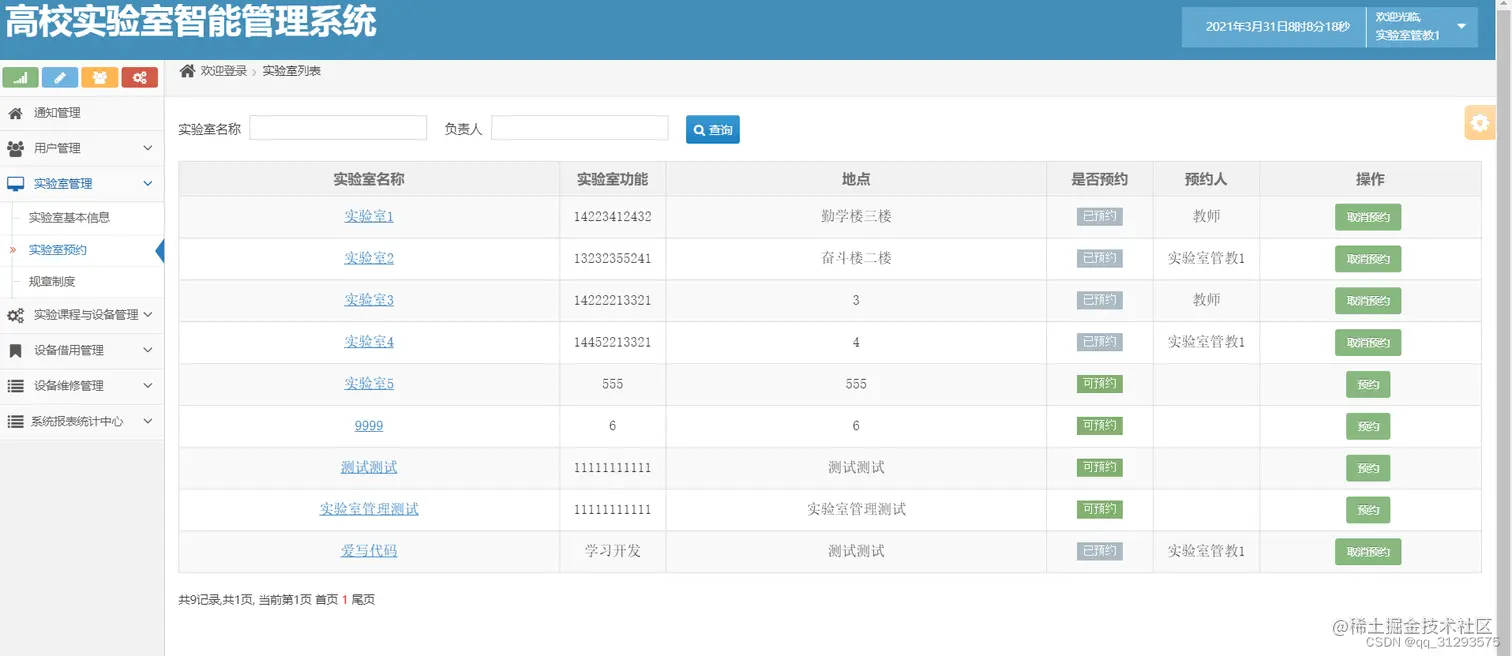 实验室管理:实验室规章制度、实验室基本信息管理、预约管理等