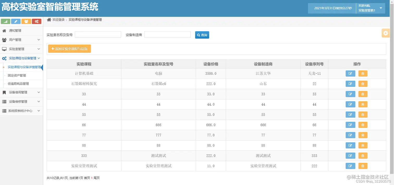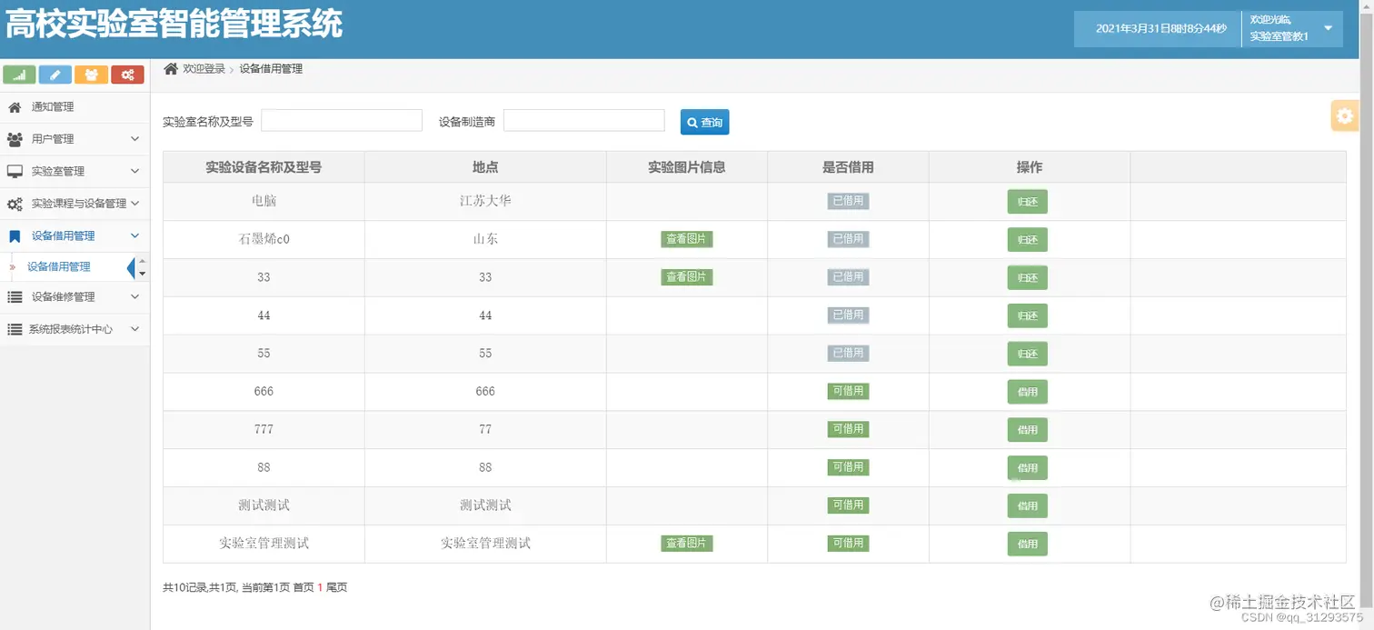 设备管理:设备的维护、借用等信息管理、以及资产管理