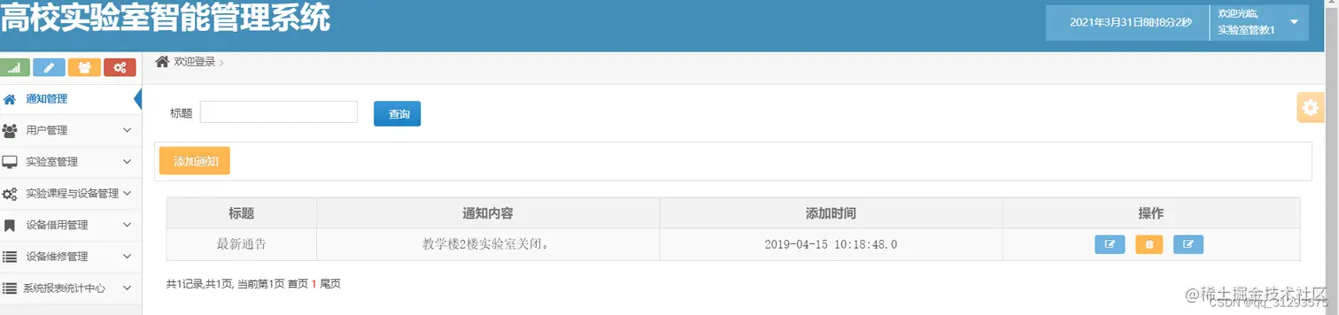 通知管理:实验室最新通告管理,信息的发布以及维护