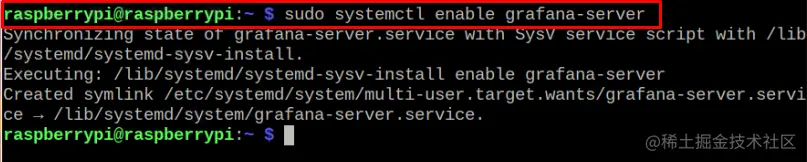 完成上述步骤后,通过以下命令在你的Raspberry Pi上启用Grafana服务。
