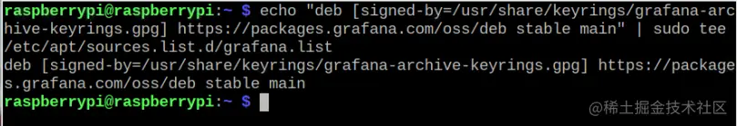 添加完密钥后,使用以下命令将Grafana仓库添加到Raspberry Pi列表中。