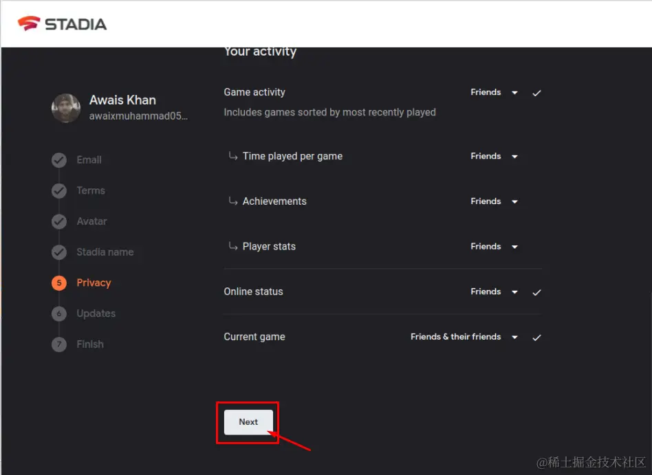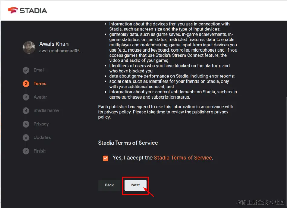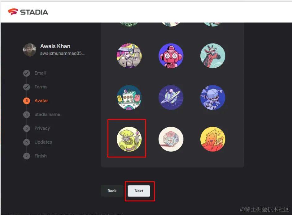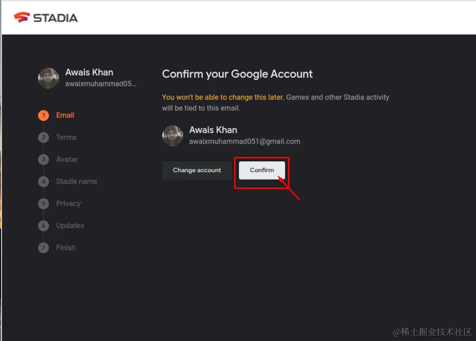 第4步:自己选择一个Stadia 的名字。