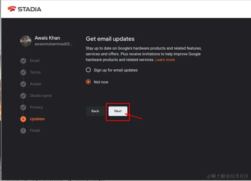 第7步:如果你想获得每日更新,选择 "注册电子邮件更新"选项,或者你可以选择 "不是现在"选项,继续进行 "下一步"。