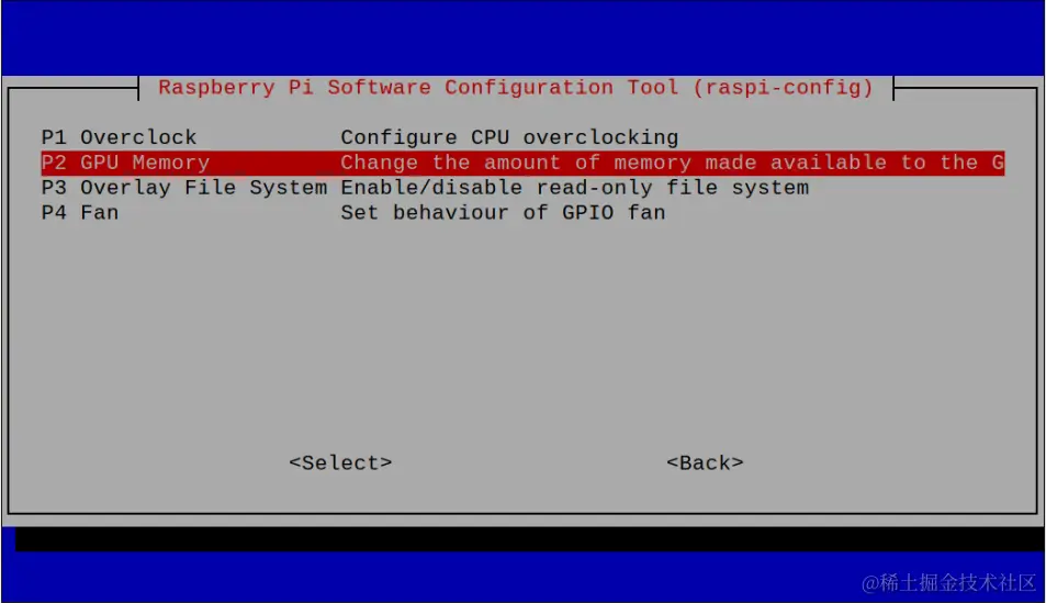 接下来,你将需要增加设备的GPU专用的内存量。要完成这一步,你需要先用以下命令打开Raspberry Pi的配置。