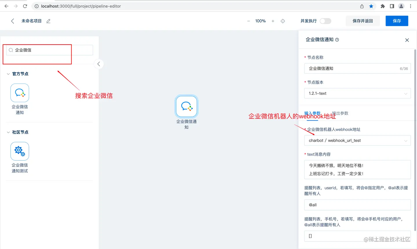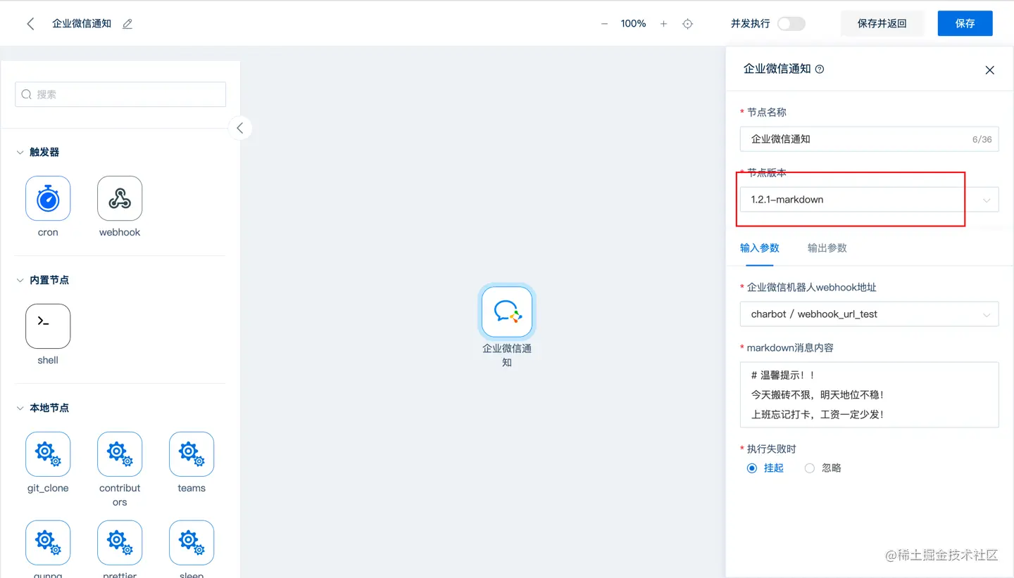 如果想参考本次测试流程具体生成的DSL,可以移步此处如何向企业微信发送通知
