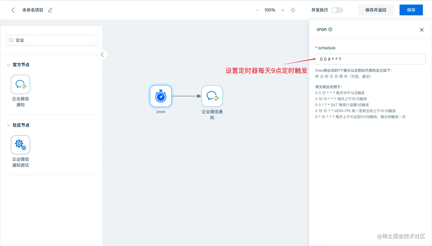 这次我们利用建木CI向企业微信发送通知,其实这一需求在大家的日常工作中也会经常遇到。比如在上班前来一个考勤打卡提示,每天在群里分享一篇好的文章,亦或是在群成员生日时自动发上一条生日祝福。 其实都可以利用建木已有的节点实现以上需求,这里本篇文章选择以自动提醒考勤打卡的场景作为示例进行演示说明。