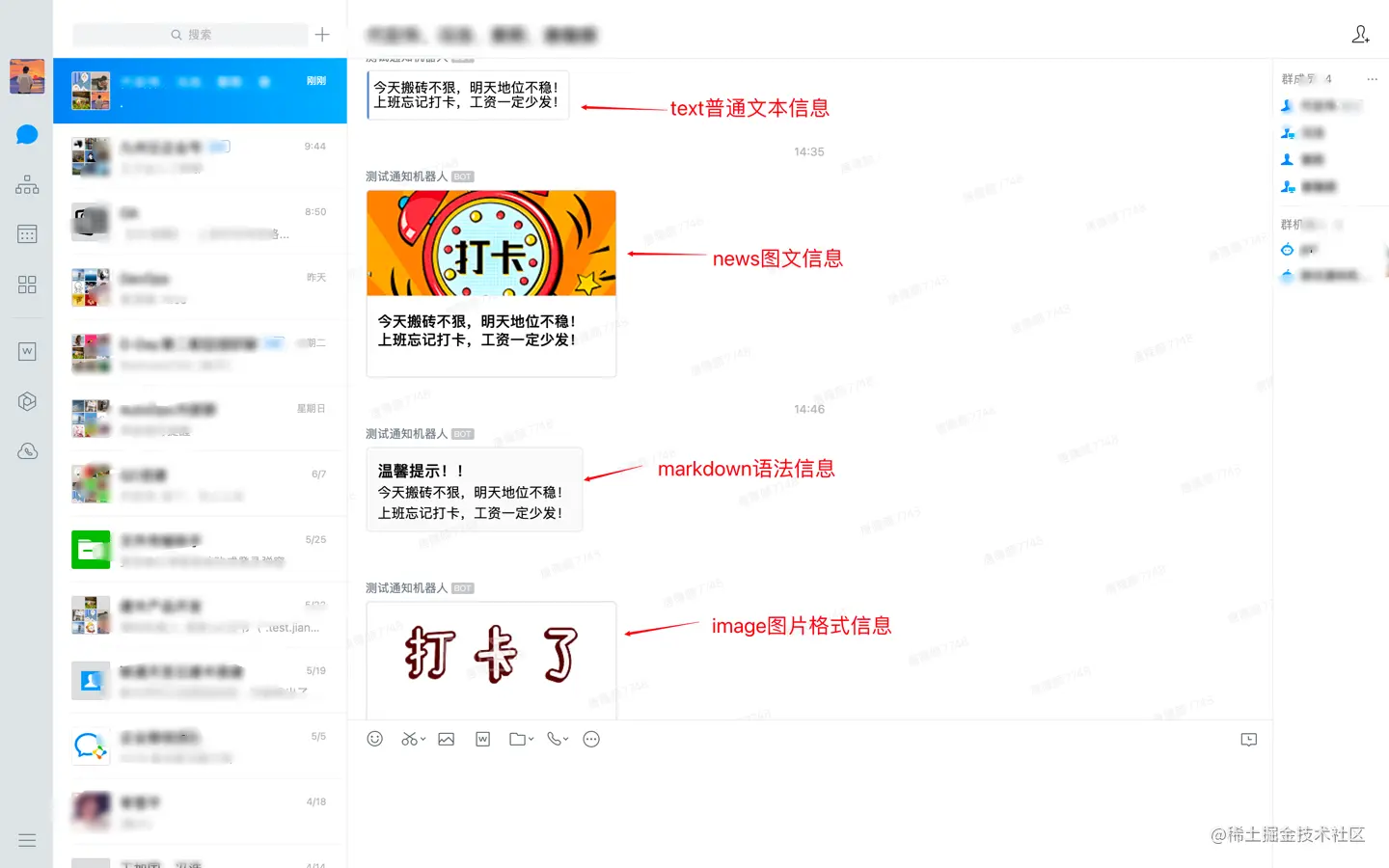 - markdown语法格式化消息