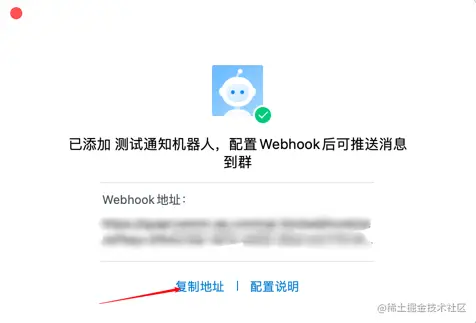 - 复制机器人的webhook地址