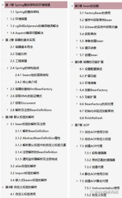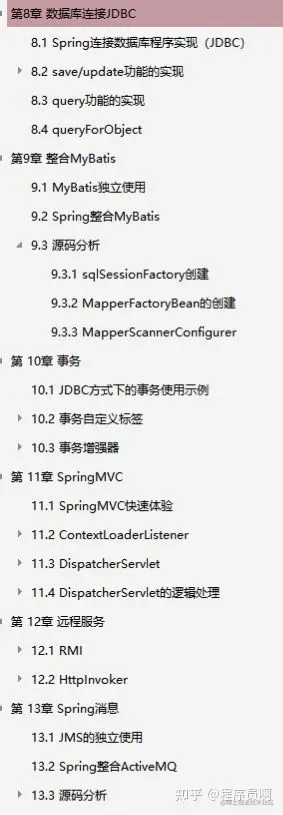 第一部分的核心实现(1-7章):是Spring功能的基础,也是企业应用部分的基础,主要是对容器以及APO功能实现做了具体的分享,如果之前没有接触过Spring源码的,建议大家认真阅读这个部分,否则阅读企业应用部分时会比较吃力