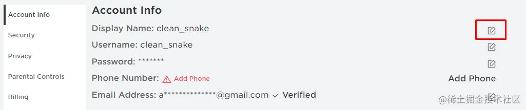 用户名是一个独特的名字,主要用于寻找平台上的其他玩家,因为有可能有很多玩家有相同的显示名称。现在让我们继续讨论如何更改Roblox账户的用户名,为此您需要进入账户的设置 ,并打开账户信息。接下来你要点击用户名前面的编辑图标,就会出现一个用户名的弹窗。