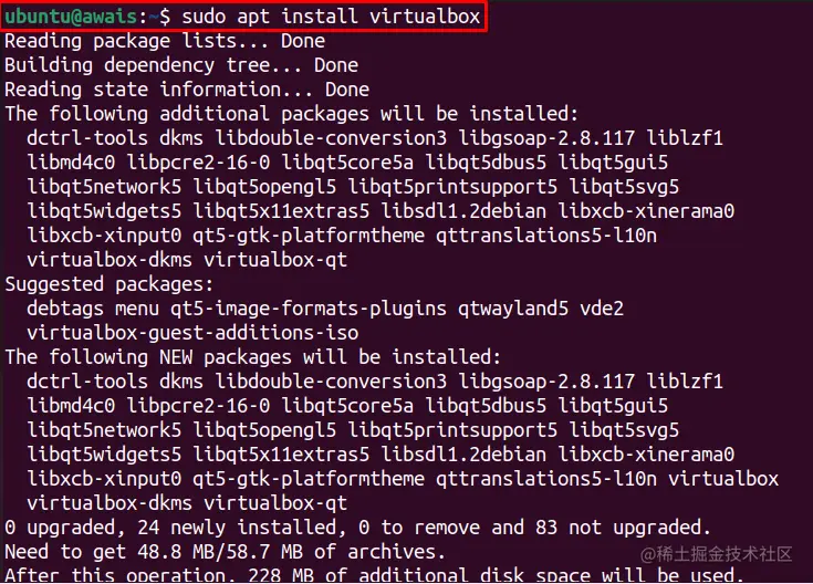 接下来,使用下面的命令在你的系统上安装VirtualBox。
