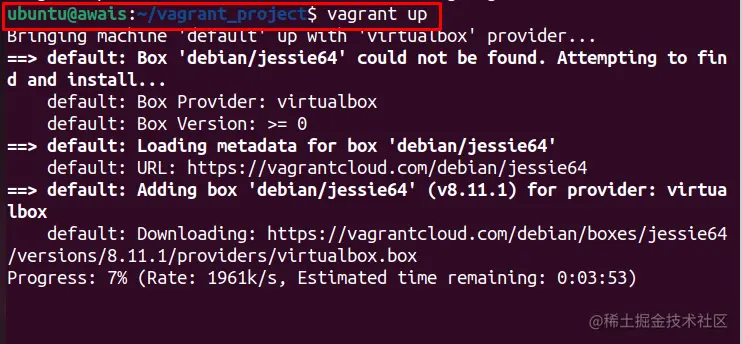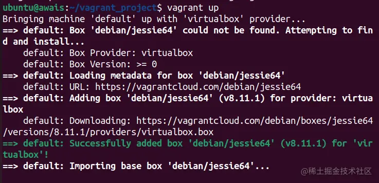 在我们的例子中,我们选择了 "debian/jessie64",并运行以下命令:。