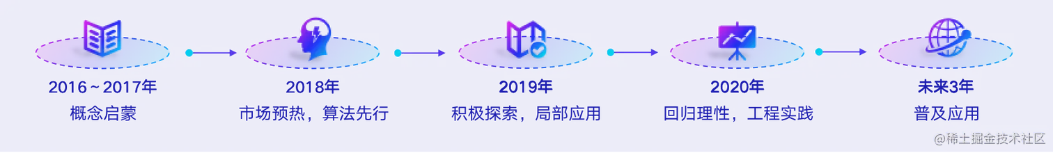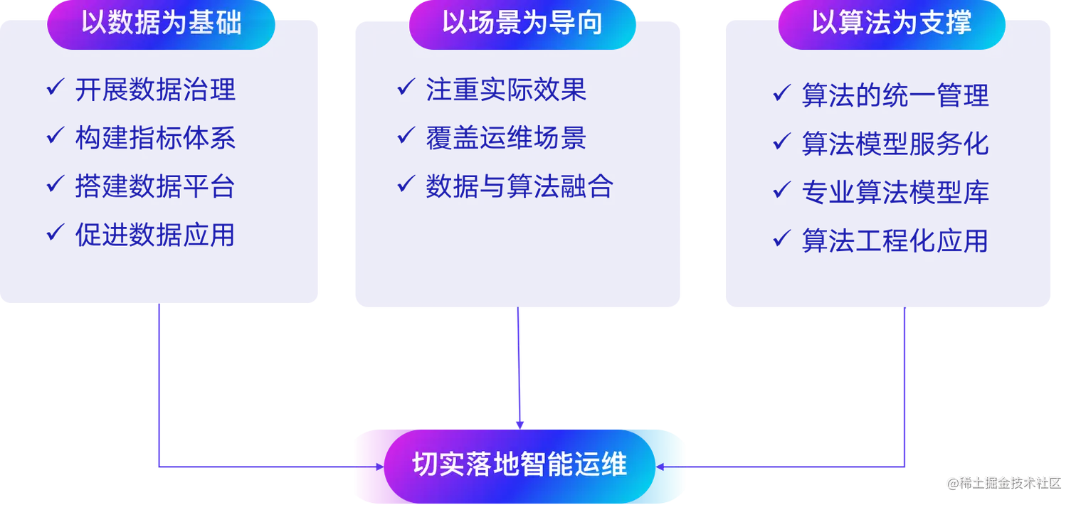 智能运维的概念最早由Gartner在2016年提出,从这时开始,智能运维进入了概念启蒙阶段。到2018年~2019年期间,市场普遍认为智能运维主要依赖算法,各大厂商也在积极探索并在小范围内应用。到了2020年,市场渐渐回归理性。随着人们对智能运维认知程度的加深,行业内达成了更加面向现实的共识:智能运维要以数据为基础、以场景为导向、以算法为支撑。