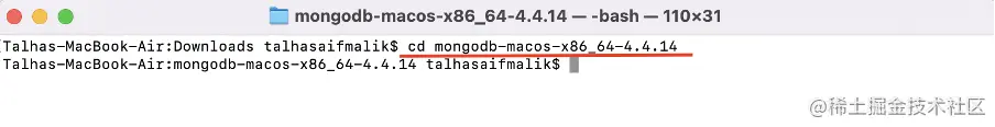 $ cd mongodb-macos-x86_64-4.4.14.tar