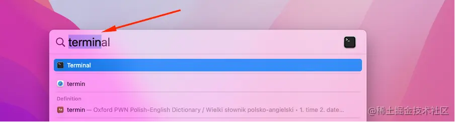 第2步:现在,打开你的mac终端,按命令+空格键,输入 "终端"。