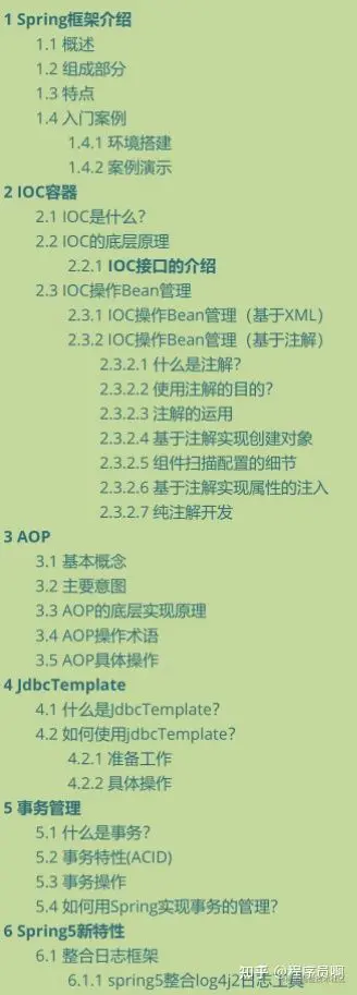 以上就是今天所梳理的全部**Spring5秘籍手册(Spring5学习手册+Spring5高级编程(第5版))、Spring5架构导图(1 Spring框架介绍 + 2 IOC容器 + 3 AOP + 4 JdbcTemplate + 5 事务管理 + 6 Spring5新特性)。**若是认可需要借鉴,评论留言哦