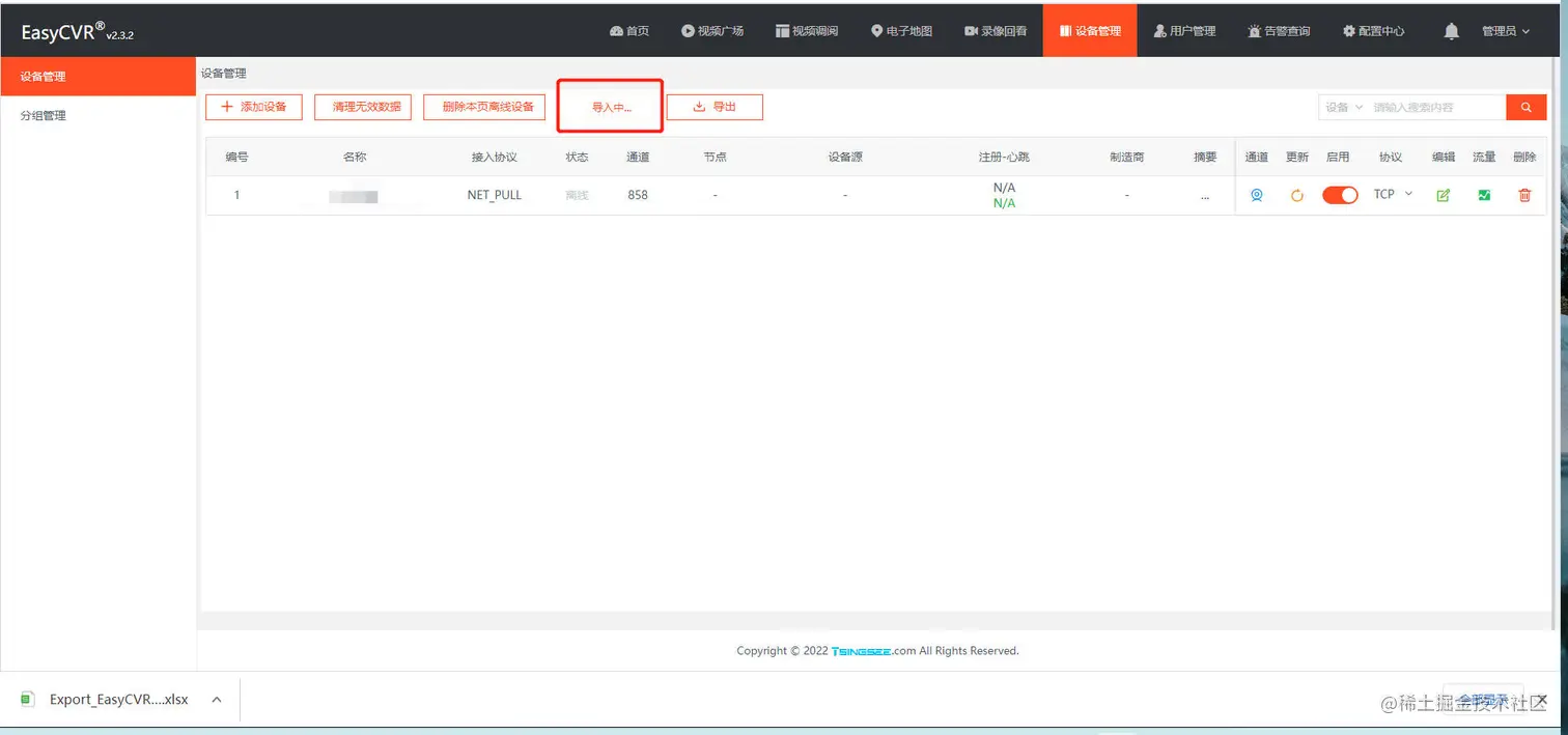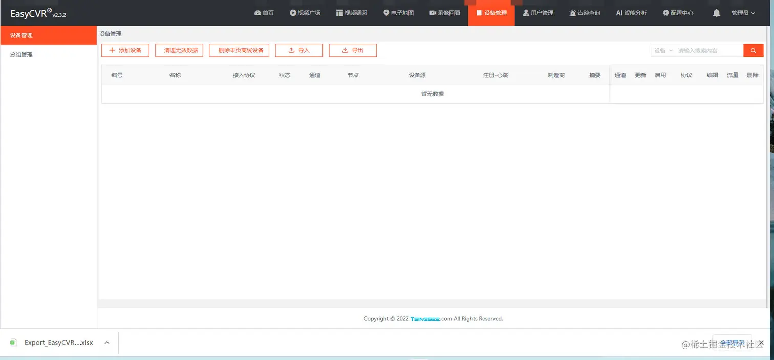 2)启动新版本的EasyCVR,进入设备管理页面: