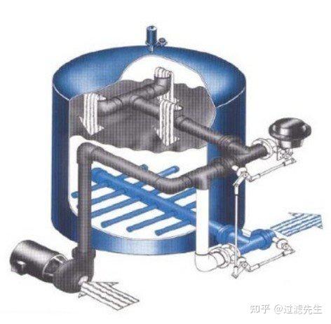 4、反洗水源可选系统内、水塔或外源水源,并可自动切换(*殊要求时)。反洗效率高,反洗时间短。(水量是传统砂滤器的30%左右)