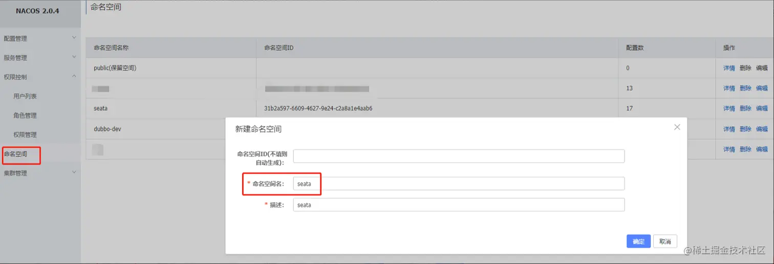 # seata注册到nacos的命名空间ID
