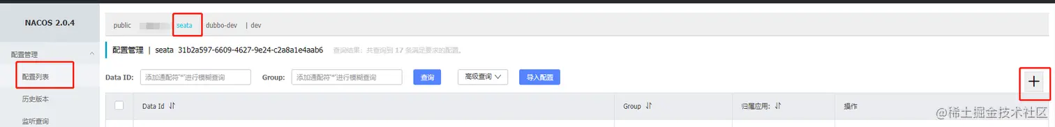 可以忽略通过界面创建的步骤,建议直接使用示例项目中的nacos-seata.sql脚本来代替,在您的nacos数据库中执行。