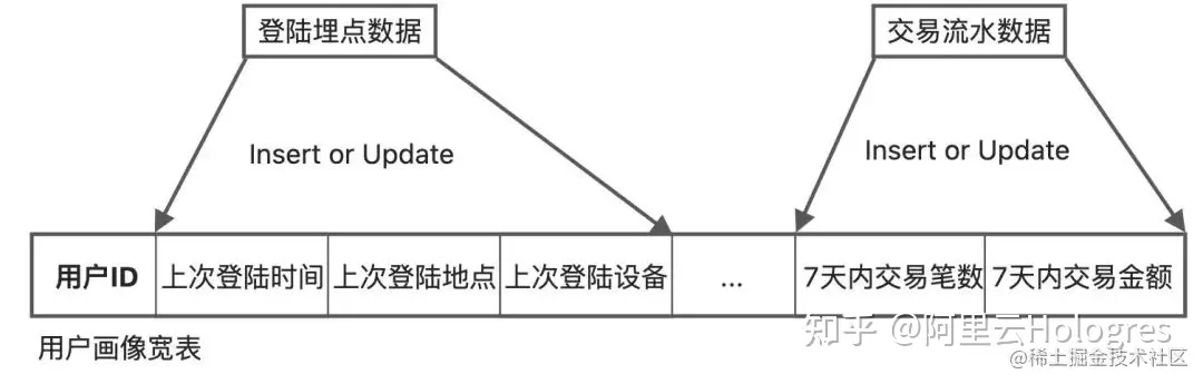 a. 画像类应用。这类应用在实时风控、实时广告投放等非常常见。上游多个Flink Job实时计算画像的不同维度,并实时写入到同一行记录的不同字段中。