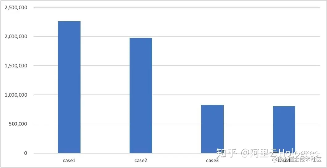 - 对比case2,case3,case4,可以看到主键冲突时,hologres定位数据所在文件并标记DELETE基本不随数据规模上涨而上涨,可以应对海量数据下的高速Upsert。