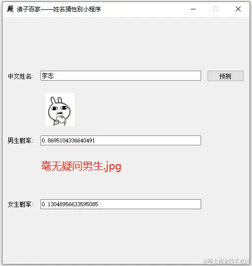 self.setWindowTitle('诸子百家——姓名猜性别小程序')