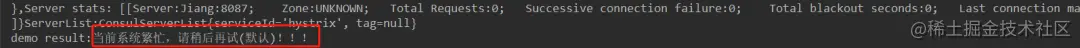 // @HystrixCommand(fallbackMethod = "demoFallbackMethod")//熔断之后的处理,fallbackMethod表示失败之后的方法名,即失败之后调用该方法