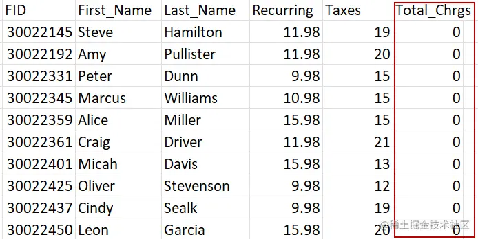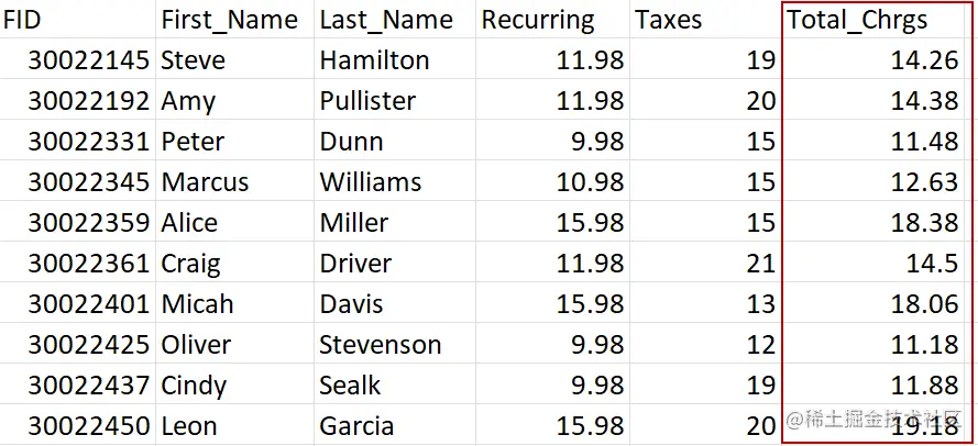 增加了一个新的列Total_Chrgs ,并对每个条目进行了计算。计算结果被四舍五入到小数点后两位,并保存到finxter2.csv 。