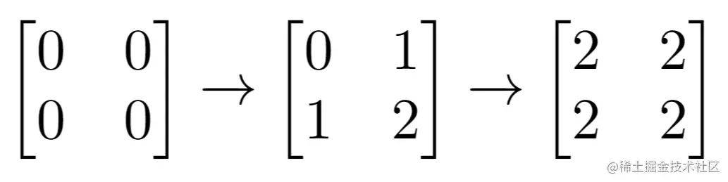解释:最开始的矩阵是 [[0,0,0],[0,0,0]]。
