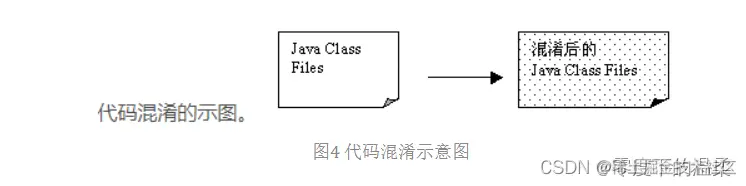 代码混淆是对Class文件进行重新组织和处理,使得处理后的代码与处理前代码完成相同的功能(语义)。但是混淆后的代码很难被反编译,即反编译后得出的代码是非常难懂、晦涩的,因此反编译人员很难得出程序的真正语义。从理论上来说,黑客如果有足够的时间,被混淆的代码仍然可能被破解,甚至目前有些人正在研制反混淆的工具。但是从实际情况来看,由于混淆技术的多元化发展,混淆理论的成熟,经过混淆的Java代码还是能够很好地防止反编译。下面我们会详细介绍混淆技术,因为混淆是一种保护Java程序的重要技术。图4是代码混淆的示图。