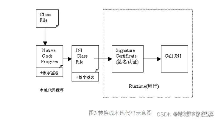 将程序转换成本地代码也是一种防止反编译的有效方法。因为本地代码往往难以被反编译。开发人员可以选择将整个应用程序转换成本地代码,也可以选择关键模块转换。如果仅仅转换关键部分模块,Java程序在使用这些模块时,需要使用JNI技术进行调用。