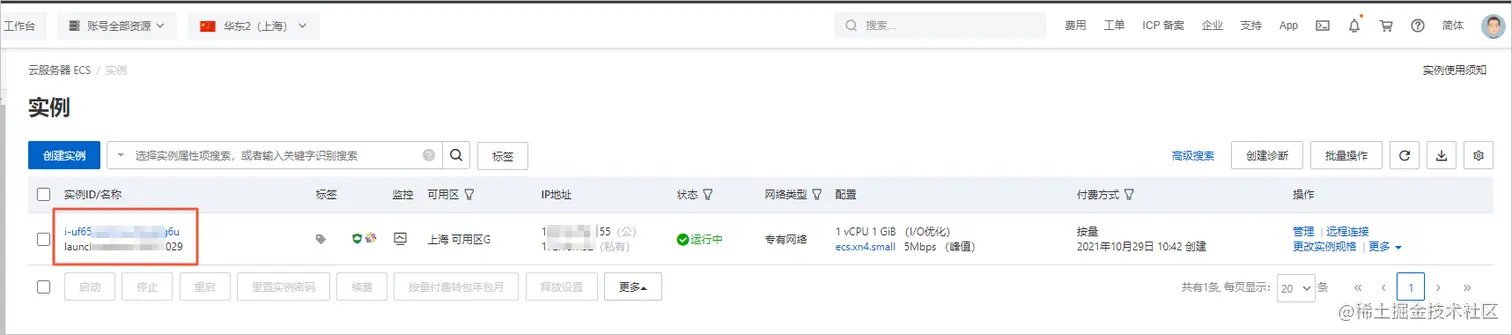 您可以在云产品资源列表中查看到您的ECS实例ID。